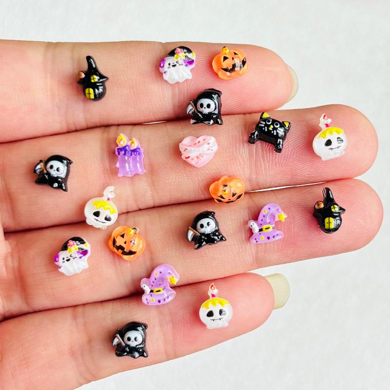 60 Pcs Cute Mini Halloween Pumpkin Head, Skull Ghost, Peach Heart Resin Charm Design Diy Nail Decoration Jewelry Accessory A117