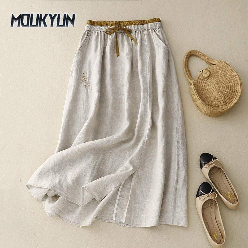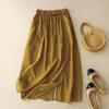 חצאית קיץ כותנה פשתן מחמיאה קפלים בסגנון עתיק רפויה מותן הדוק תנופה גדולה לנשים
