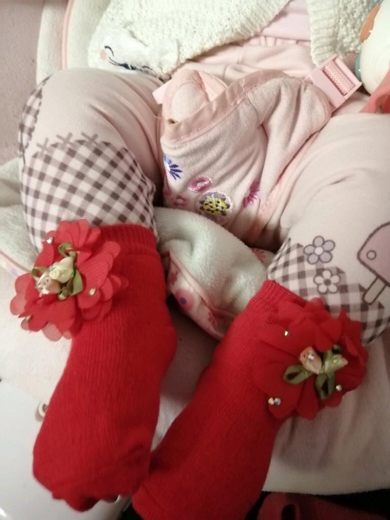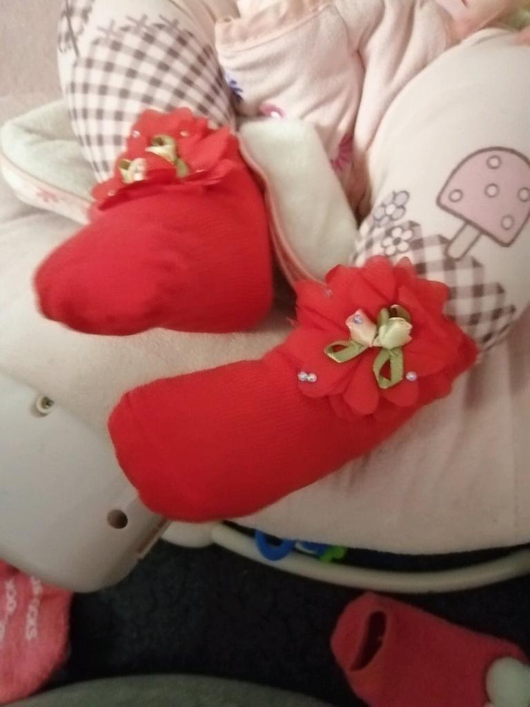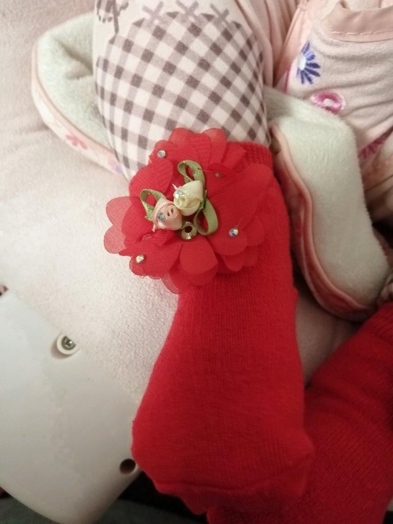Носочки хорошенькие, но шли оооооочень долго. Заказала в мае, получила в августе. К сожалению дата, к которой заказывали, прошла (. Ну ничего, будем носить. Тянутся хорошо, на 6 мес как раз и даже ещё чуть чуть запас есть