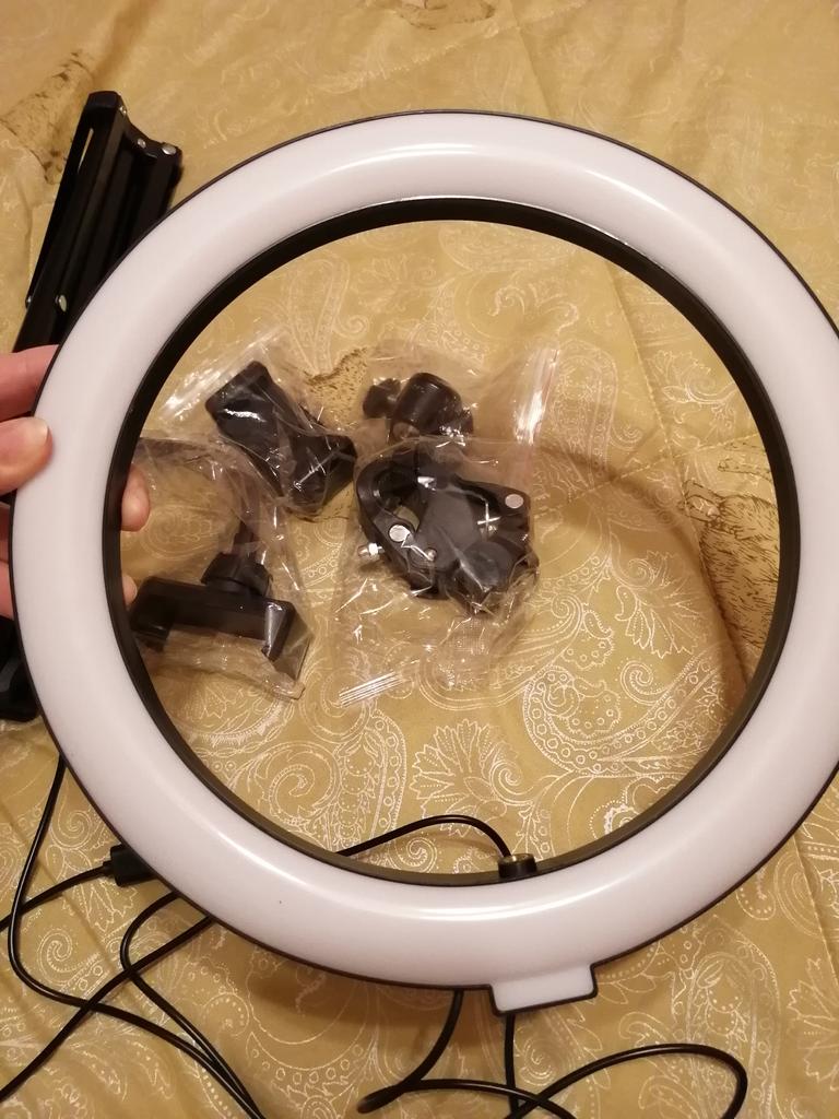 💕КОЛЬЦЕВАЯ ЛАМПА СО ШТАТИВОМ💕 🌱 Лампу я заказала 1.09, пришла она в почтовое отделение 30.09. Получается, шла ровно 30 дней 🌱 Отдельно хочу выделить тот момент, что посылка отслеживалась полностью, от начала до конца её пути 🌱 У лампы три режима: белый, жёлтый и холодный свет (на фото они показаны) 🌱Также имеется два держателя для телефона. Один крепиться к лампе, а другой крепится на штатив они оба по своему подвижны 🌱 Штатив вместе с лампой в высоту около 2-х метров. Лампа также с помощью держателя подвижна (на видео я её неправильно прекрипила) 💜 Лампой и штативом я очень довольно, хоть и боялась, что из-за почты России придёт всё поломанное. Покупкой довольна, могу смело рекомендовать, но помните, что от некачественной доставки никто не застрахован. 💜💜💜