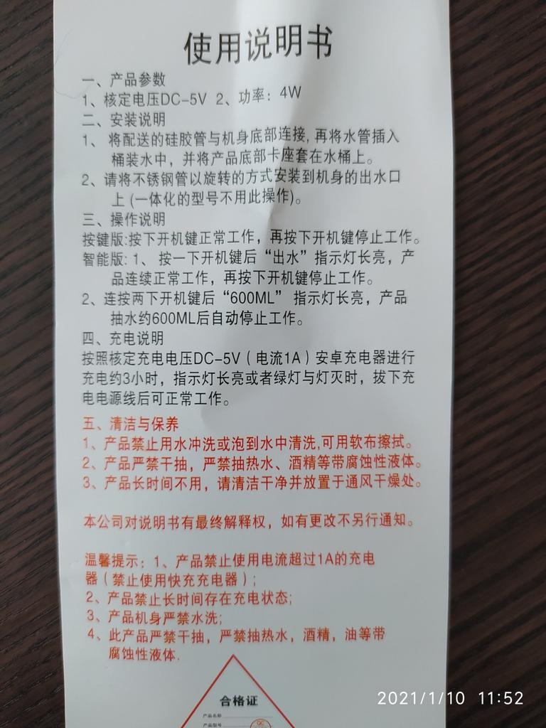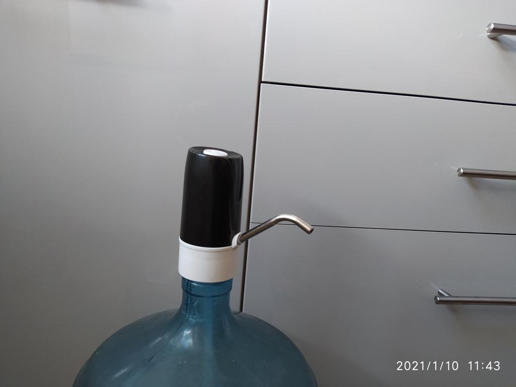 Получили электрическую помпу, на 19 литровую бутылку одевается прямо на крышку, пришла заряженная, сразу установили. Свою функцию выполняет, воду качает 💧🥛. Диаметр шланга для набора воды и носика меньше чем у механических, поэтому струйка потоньше и вода набирается чуть медленнее. Зато нажал кнопочку и не надо больше прикладывать никаких усилий, набрал сколько надо и лёгким нажатием отключил. При работе конечно слышен шум моторчика. И помпа отличается от фото продавца, но для меня это некритично, лишь бы срок службы был не 2 дня как пишут в некоторых отзывах. Ещё в коробочке была инструкция, 🈵конечно на китайским, во втором пункте 2 стоит цифра 600 мл, я думаю это её производительность в минуту. Прошло полгода, помпа работает исправно.