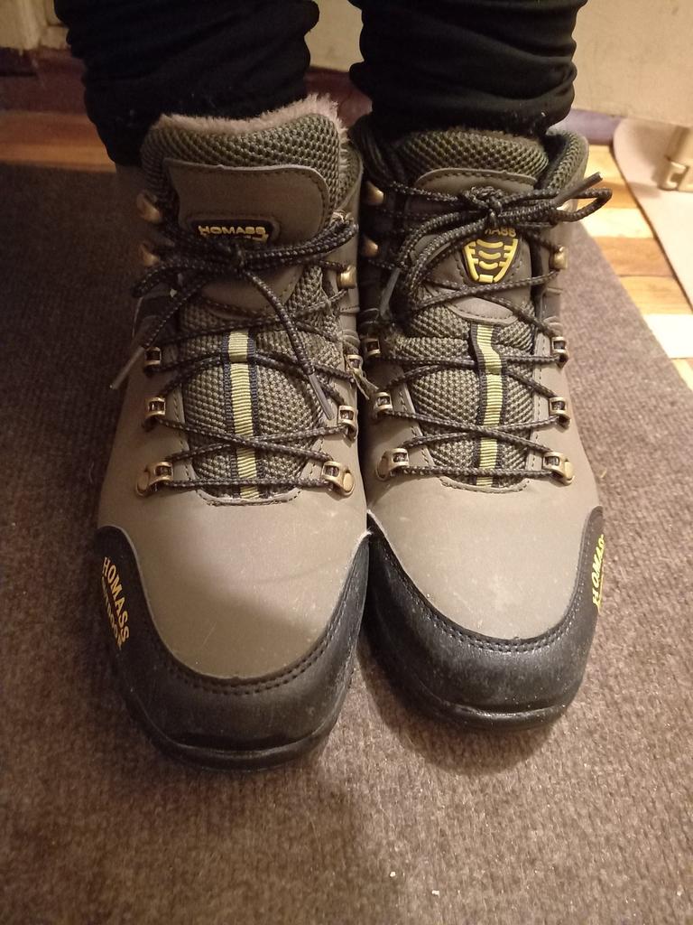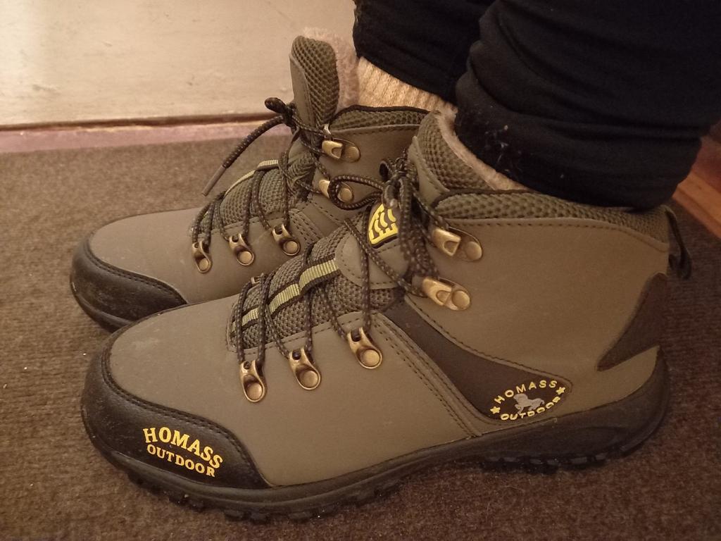 Спасибо большое продавцу, очень быстро пришли ботиночки!) В Санкт-Петербург за 10 дней! Они очень лёгкие, удобные, красиво смотрятся на ноге! На полный 39 размер заказала 41 размер. С тонким шерстяным носком хорошо носятся, также есть небольшой запас и для толстого шерстяного носка. Шнурки очень удобные, хорошо фиксируются, не развязываются. Носила, проверяла неделю. Не протекают, хотя была слякоть, зима теплая. Всё хорошо, но, в ботинках есть два минуса: первый минус виден на фото - язычки у ботинка разной длины, один короче, другой длиннее, причем разница существенная(. Второй минус - на льду они очень сильно скользят, очень неудобно в этом плане. Хотя, подошва, как-будто, проризиненная. Не знаю, можно ли будет сделать на подошве какое-нибудь антигололедное приспособление у сапожника? А так, сапожки замечательные, очень радуют!) Спасибо продавцу)