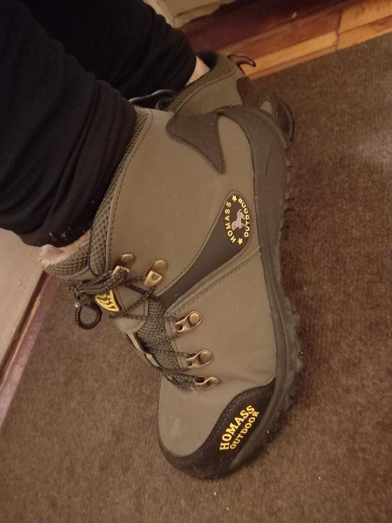 Получила ботинки мужские, черного цвета 43размера. Заказывала для себя. Ориентировалась на размер ноги по таблице. То есть на размер ноги 26,5см я взяла 43размер. Всю обувь на JOOM беру по этому принципу. Только пару раз пришла обувь не соответствующая размеру. В этот раз всё ок, как и должно быть для обуви на холодный период есть небольшой запасик для теплого носка или ортопедической стельки. К тому же башмаки объёмные, на широкую ногу. Теперь про качество обработки. Швы ровные, нитки не торчат. Маркировка в виде мягкой тряпочки с размером. Все изготовлено симметрично. Фурнитура на вид качественная. Подошва, как будто прорезиненная, не пластмассовая. Отделочные, защитные накладки с переди и сзади изготовлены вроде бы как похоже на брезент. Сам башмак из плотного нубука. Транспортировка. Упакована посылка в пупырку и почтовый пакет. Внутрь обуви вложены пластмассовые вставки. Получила ботинки без заломов и вмятин. В принципе я довольна. К покупке рекомендую.