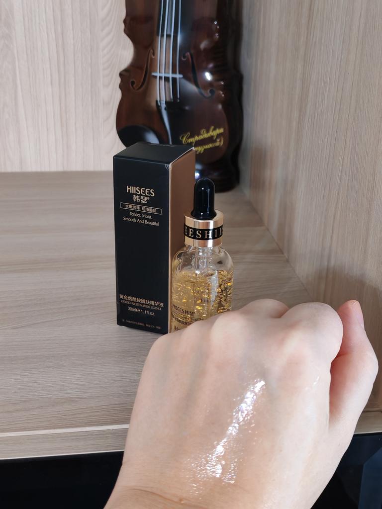 ✨ Золотая сыворотка для лица ✨ Текстура у нее, как и всех подобных сывороток, чуть тягучее воды. Сыворотка хорошо увлажняет кожу, мне нравится, я их вообще часто беру. Информация от производителя: Сыворотка увлажняет и питает кожу лица, борясь с мел ими мимическими морщинками за счёт содержания в ней молекул гиалуроната натрия*. Также она улучшает тон кожи, уменьшает поры. Видимые изменения после первого применения. *Гиалуронат натрия — это структурный компонент многих тканей человеческого тела. Он находится в коже, глазах, хрящевых соединениях, нервах. Вещество было открыто в 1934 году. В косметологии гиалуронат натрия выступает средством №1 в вопросах сохранения молодости и красоты кожи. Способ применения: С помощью пипетки нанести небольшое количество сыворотки на очищенную кожу, вбить похлопывающими движениями до полного впитывания. Применять 2 раза в день. Срок годности указан на упаковке. Объем пузырька 30 мл. Сыворотка доставлена в немного мятой коробочке в почтовое отделение за 1,5 месяца живым треком в сборной посылке 👍 Товар и продавца рекомендую 👍