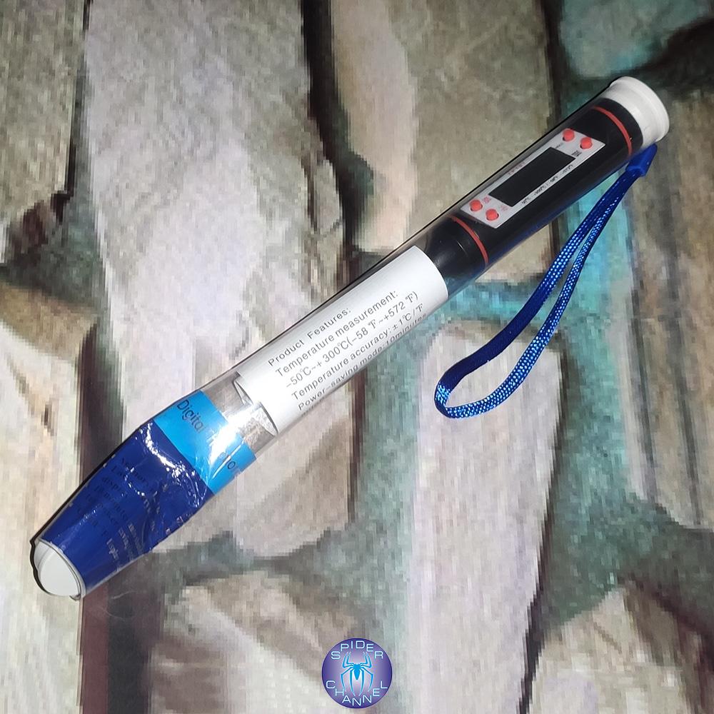 Помимо конверта пластикового, сам термометр упакован в прозрачную пластиковую трубку с тесёмкой в виде ручки, так что при желании можно повесить на крючок. Есть инструкция на английском. Все кнопки работают. Показывает в цельсии и фаренгейте. Проверили, приложив к руке - работает, температура повышается. Будем применять на кухне.