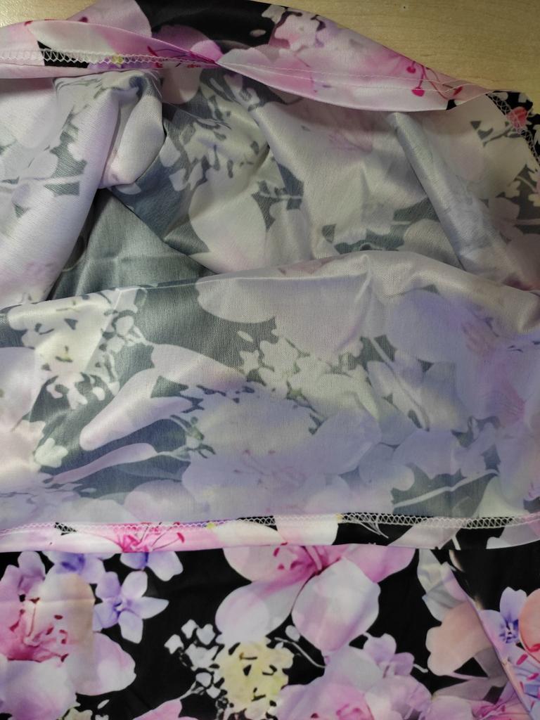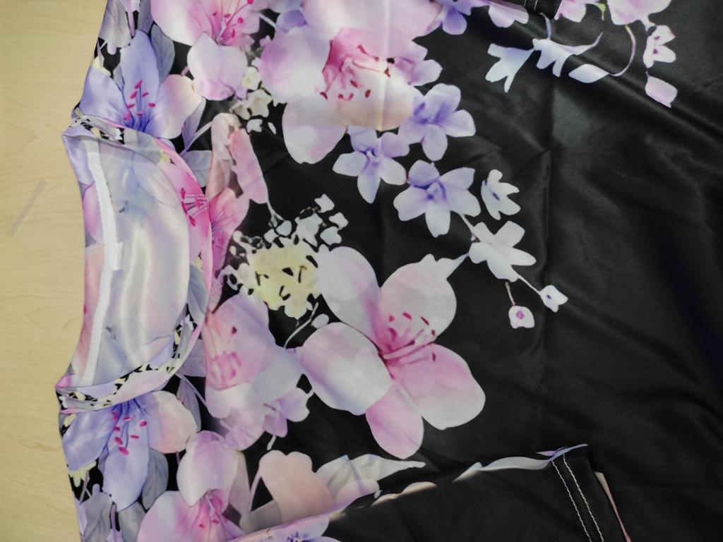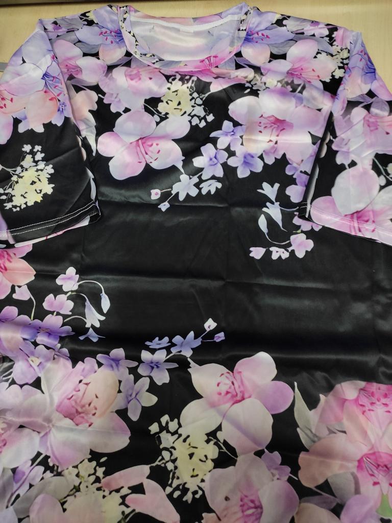Я знала, что это синтетика, но не до такой же степени... Выглядит как атласный халат, с присущим атласным блеском. На футболку совсем не похожа. Причем блеск присутствует и на изнанке. Более того, очень длинная. По спинке 82 см. Это уже ближе к тунике, а не футболке. Рукав до локтя. Единственный плюс - расцветка. Мне нравится такое сочетание цветов. Однозначно не летний вариант и не футболка. Немного ушью ширину рукава. Буду носить под кардиган осенью с брюками. Хотя планировала сейчас с юбкой