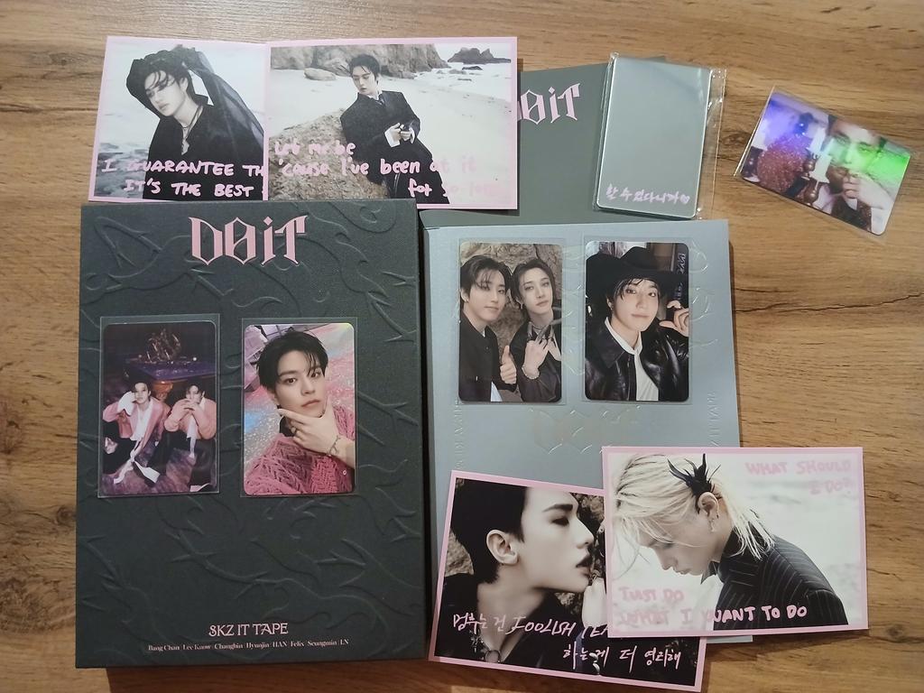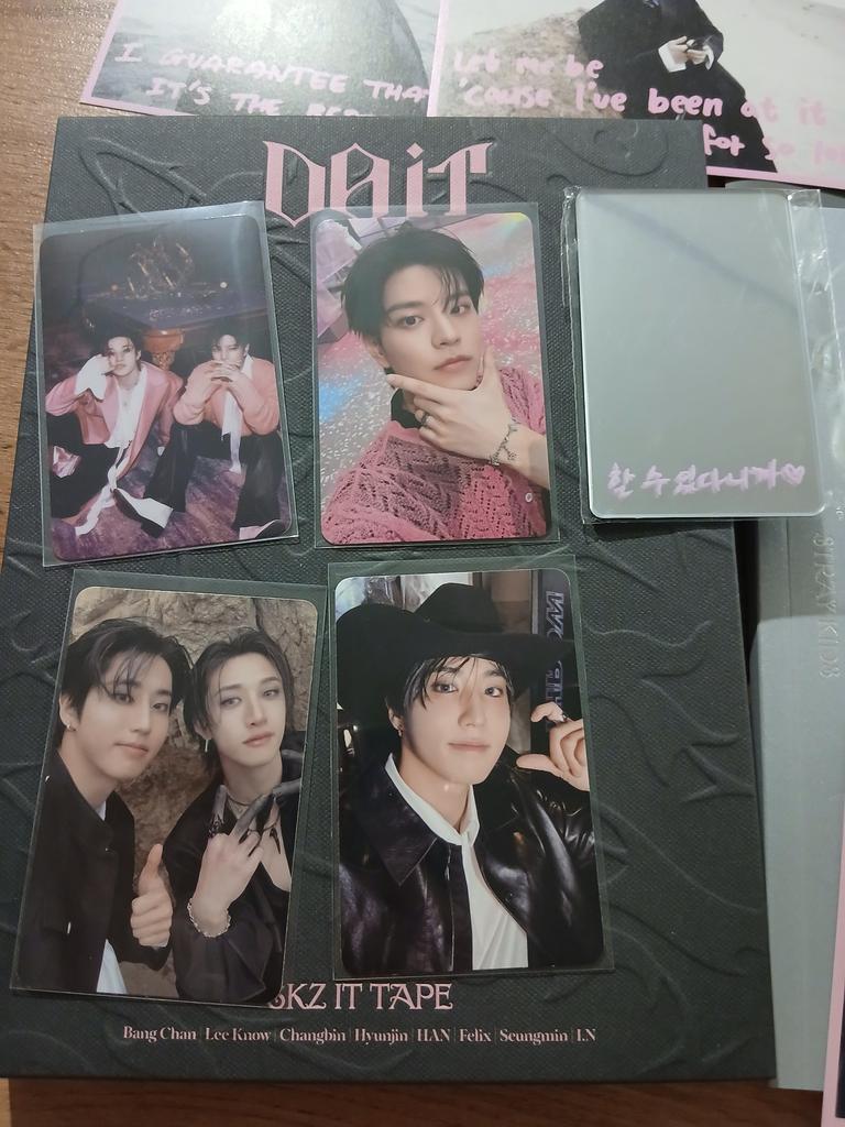 Посылка доехала в срок. Очень рада, что попалась предзаказка Сынмина, я очень счастлива. Порадовал Хан и юнитные фото карты. Магазин в подарок положил карточку Хёнджина.